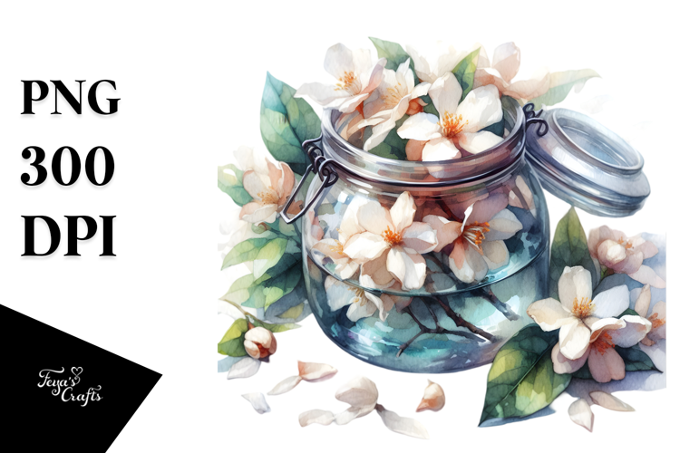 Watercolor Sticker Summer Flower Abstract Png Sublimation Jasmine Glassjar