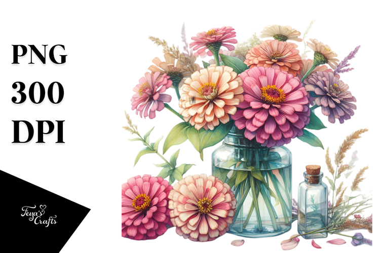 Sticker Summer Easter Flower Mothersday Sublimation Whitebackground Zinnia Glassbottle