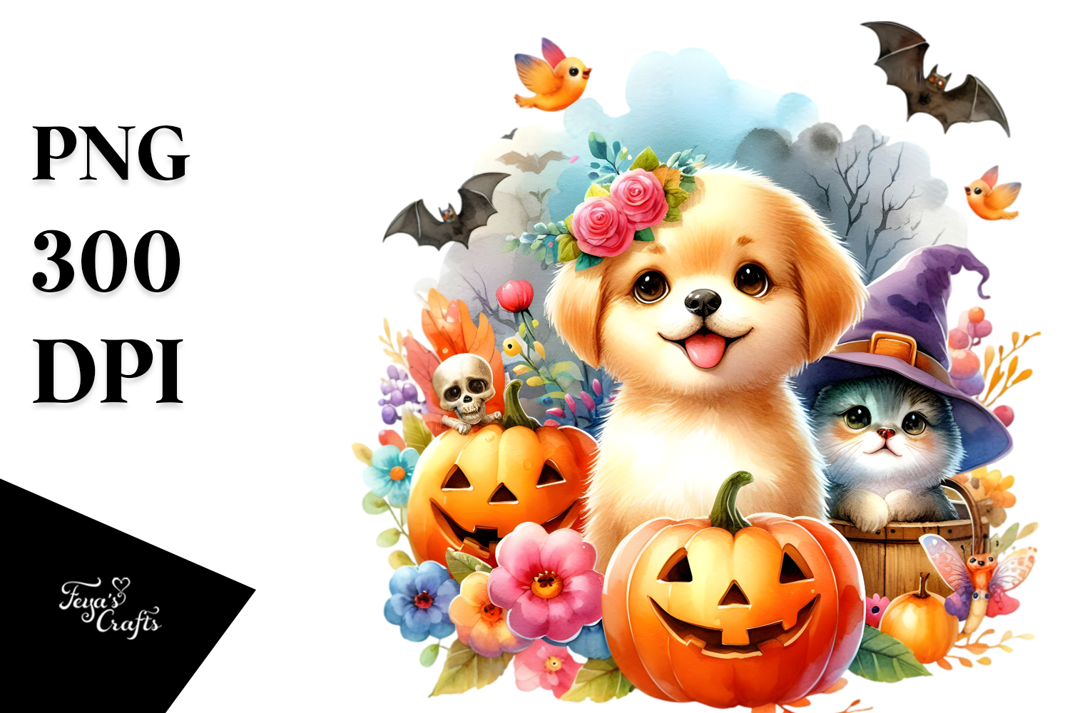 Cute Baby Dog Halloween Scene | Sublimation | Clipart