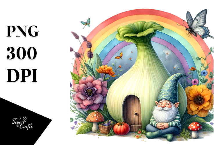 Colorful Vegetable Gnome House | Sublimation Clipart example image 1