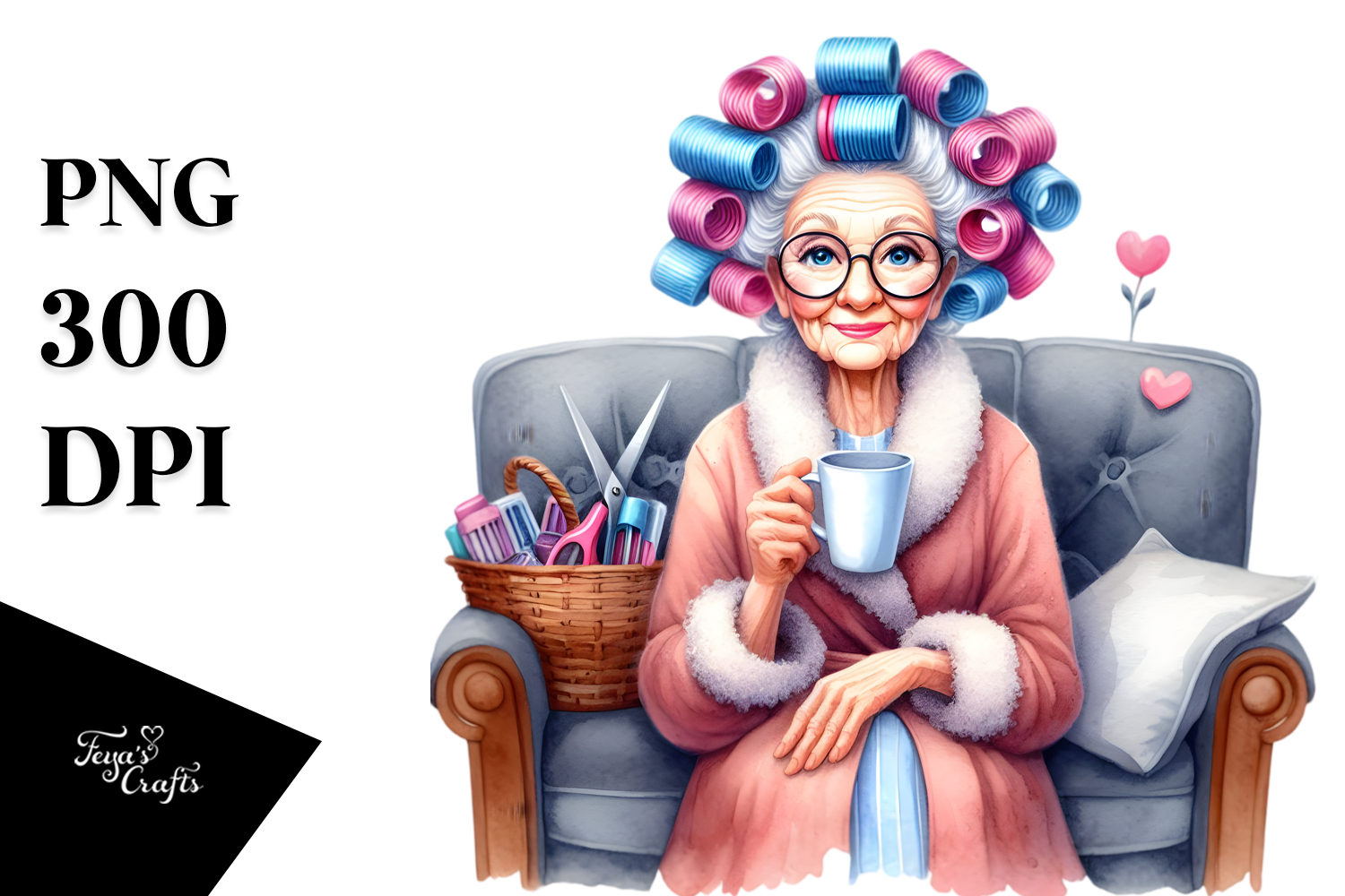 Watercolor Character Sitting on Couch with Mug | Sublimation
