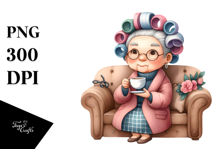 Watercolor Character Sitting on Couch with Tea Cup | example image 1