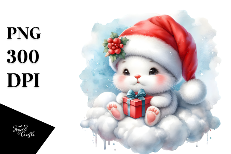 Cute Baby Bunny with Santa Hat PNG example image 1