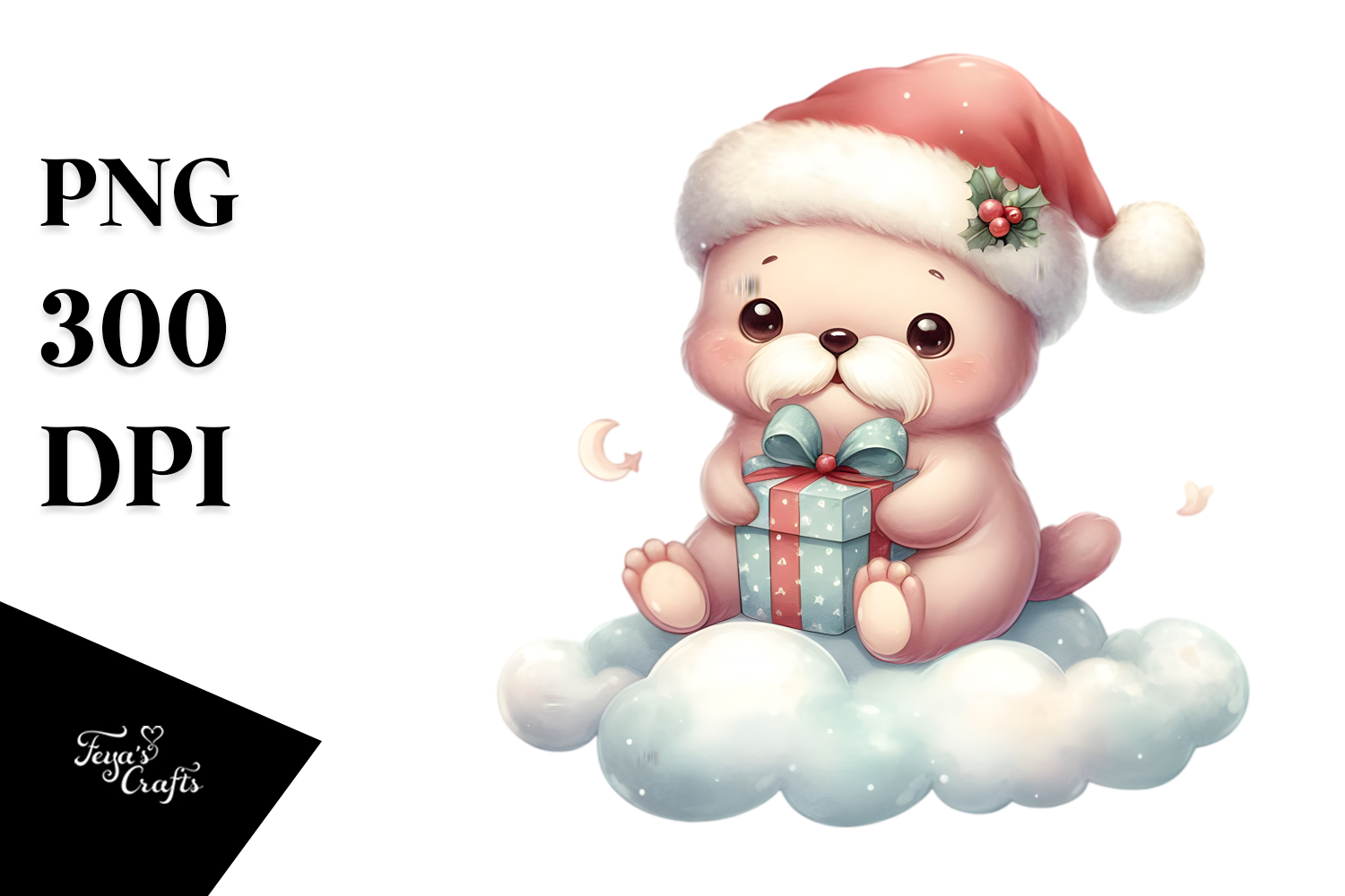 Retro Baby Walrus with Santa Hat PNG example image 1