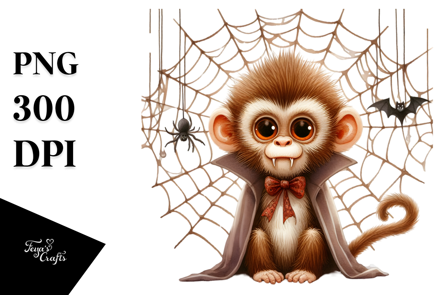 Similar Design Products to Funny Watercolor Monkey with Halloween Fangs Clipart