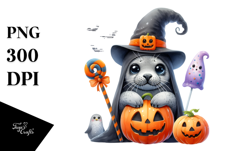 Similar Design Products to Funny Seal in Halloween Suit White Background Clipart