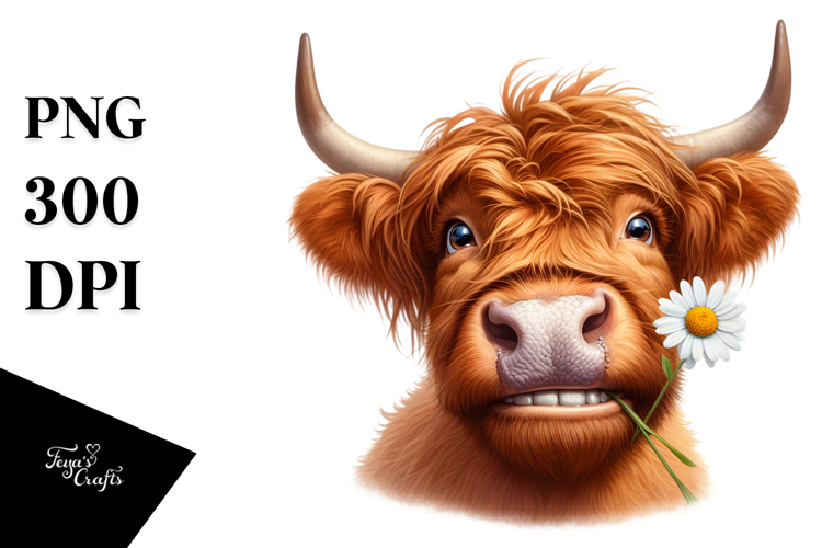 Similar Design Products to Watercolor Highland Cow Portrait Daisy | Sublimation Clipart