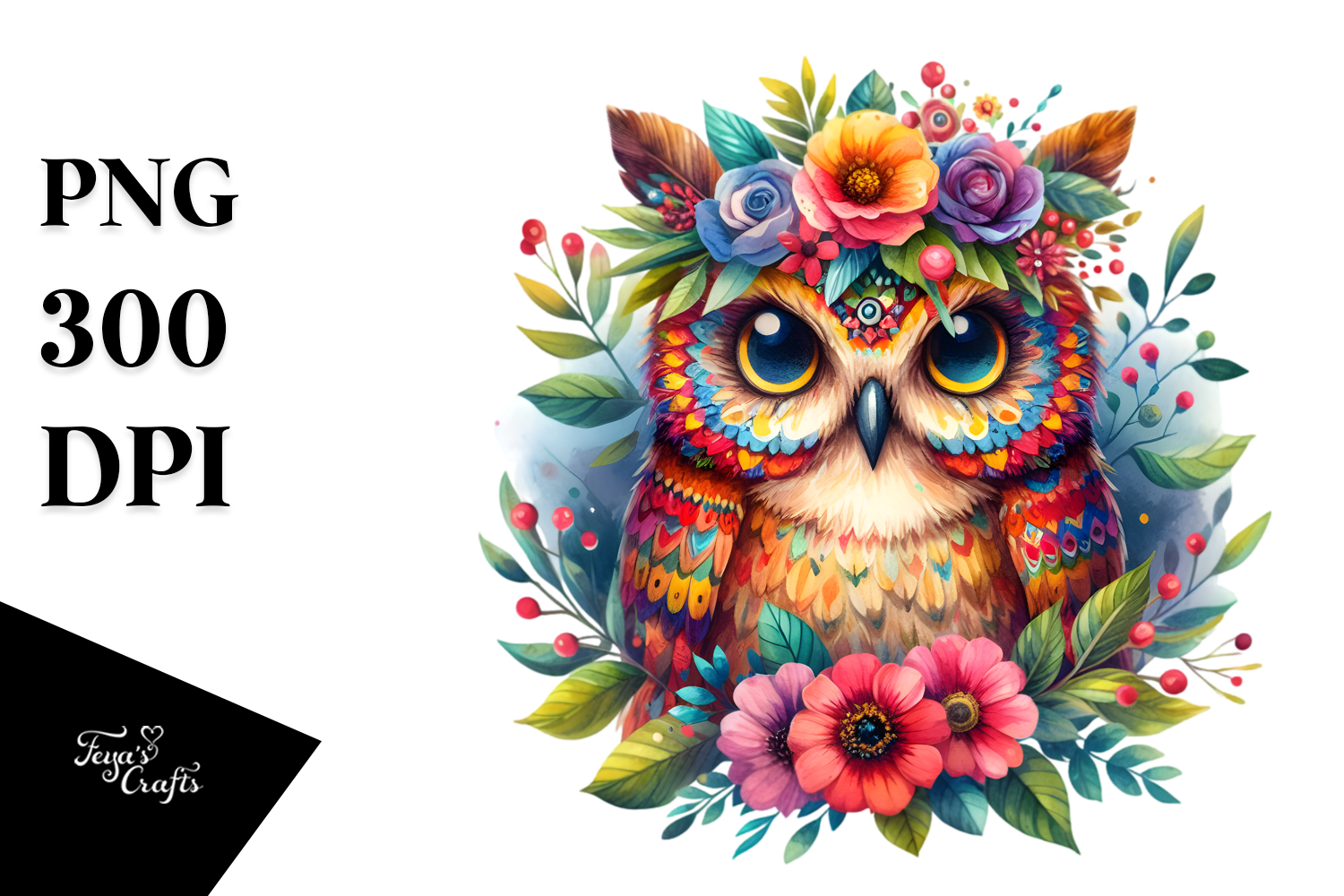 Similar Design Products to Watercolor Owl with Floral Wreath on Head | Clipart