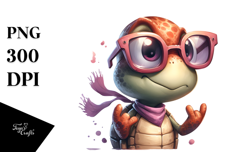 Silly Cartoon Turtle with Oversized Sunglasses PNG example image 1