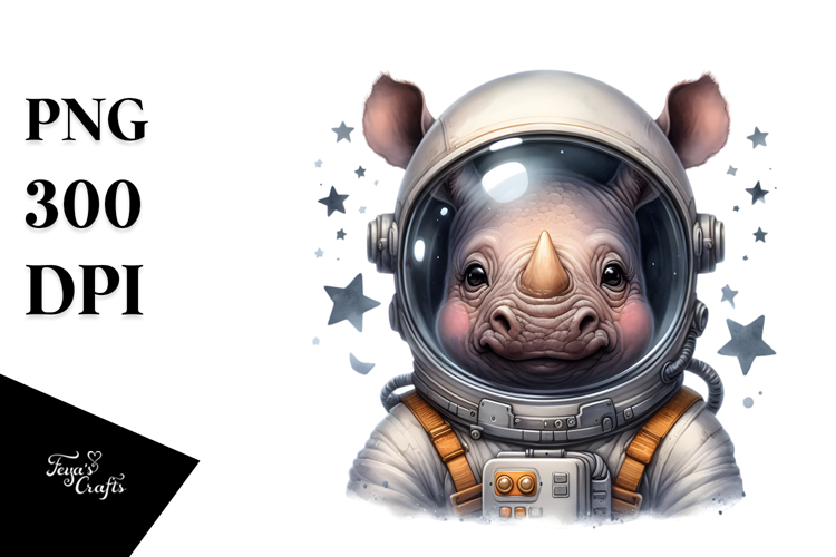 Cute Baby Rhino in Astronaut Helmet PNG example image 1