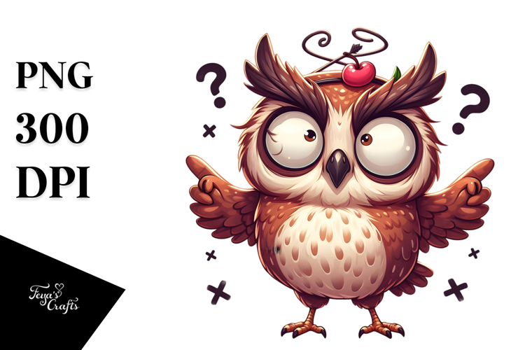 Cartoon Sticker Summer Flower Owl Png Sublimation Goofy Cross-eyed