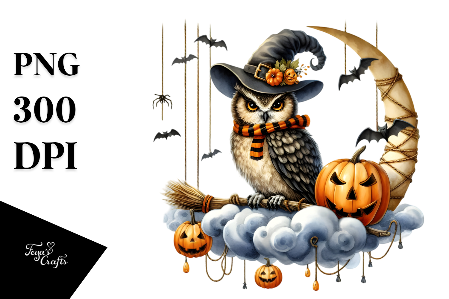 Owl Dressed for Halloween on Cloud PNG example image 1