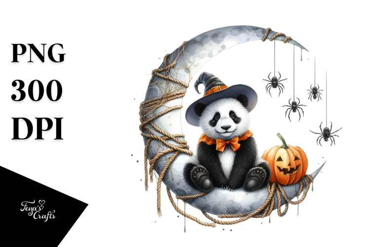 Panda Dressed for Halloween on Half Moon PNG example image 1