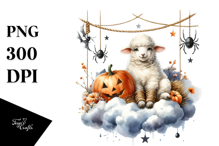 Lamb Dressed for Halloween on Cloud PNG example image 1