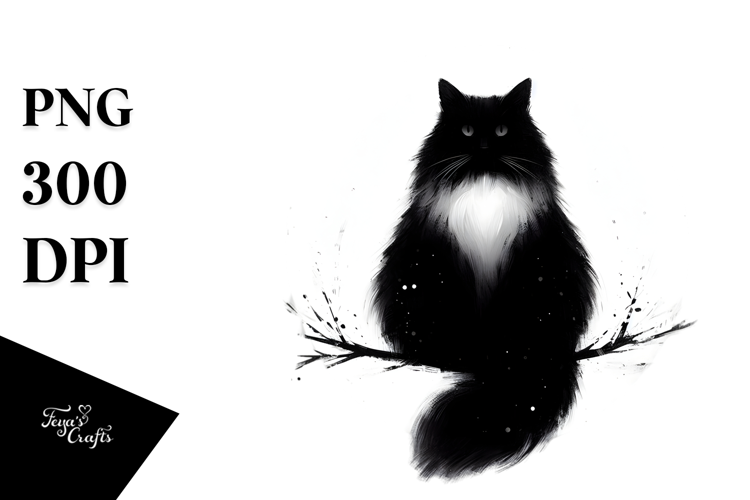 Image Simple Whitebackground Centered Blackcat Digitalpainting