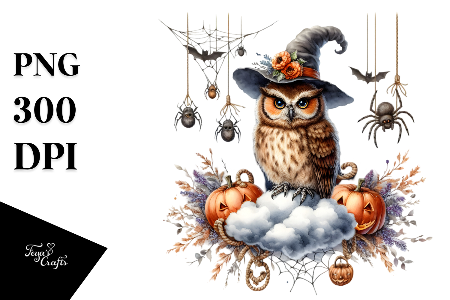 Halloween Owl Cloud Ropes Spiders Whitebackground Centered Nottouching Haloweenstyle