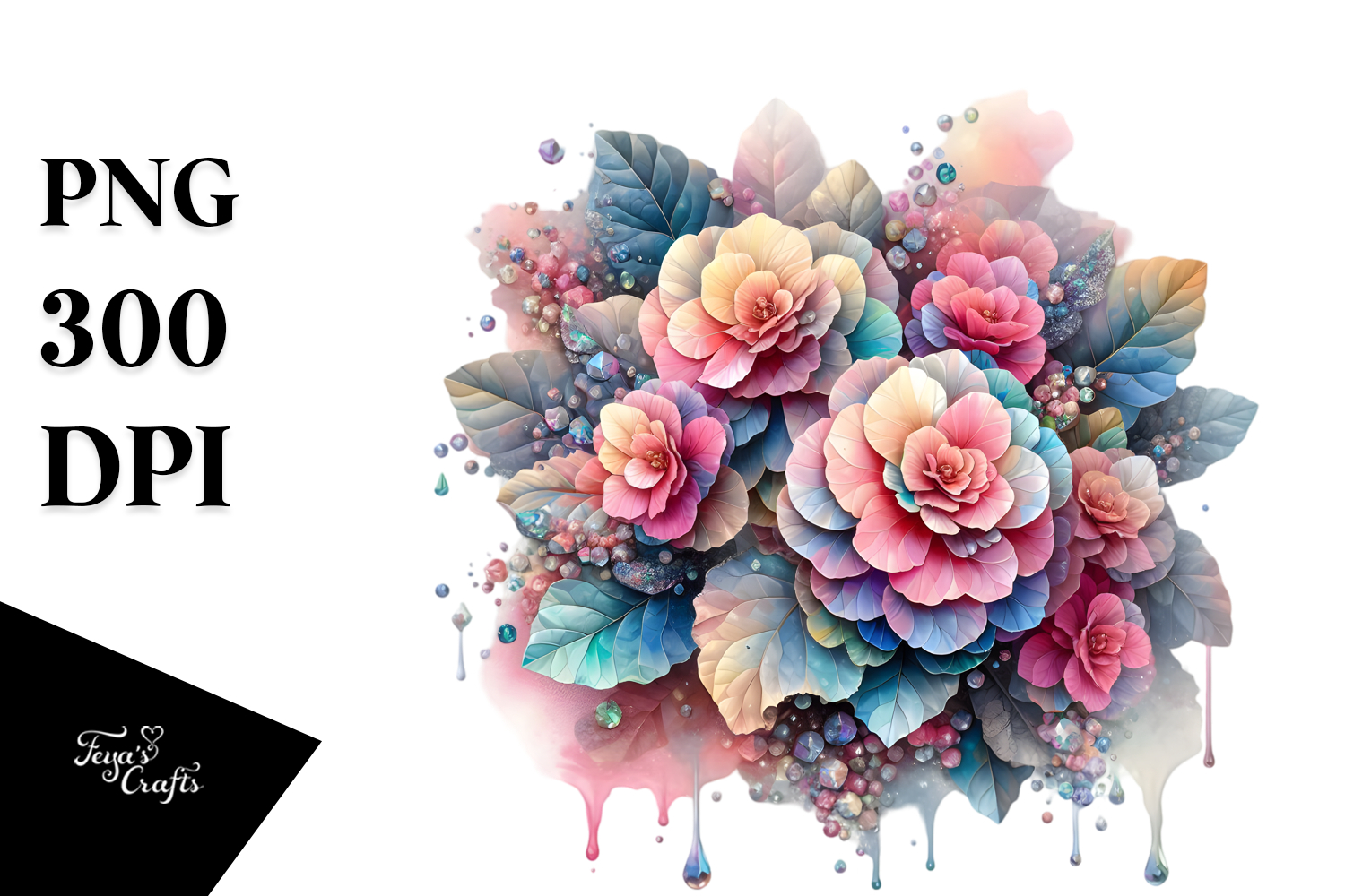 Sticker Summer Flower Glossy Abstract Png Sublimation Begonia Diamond-like