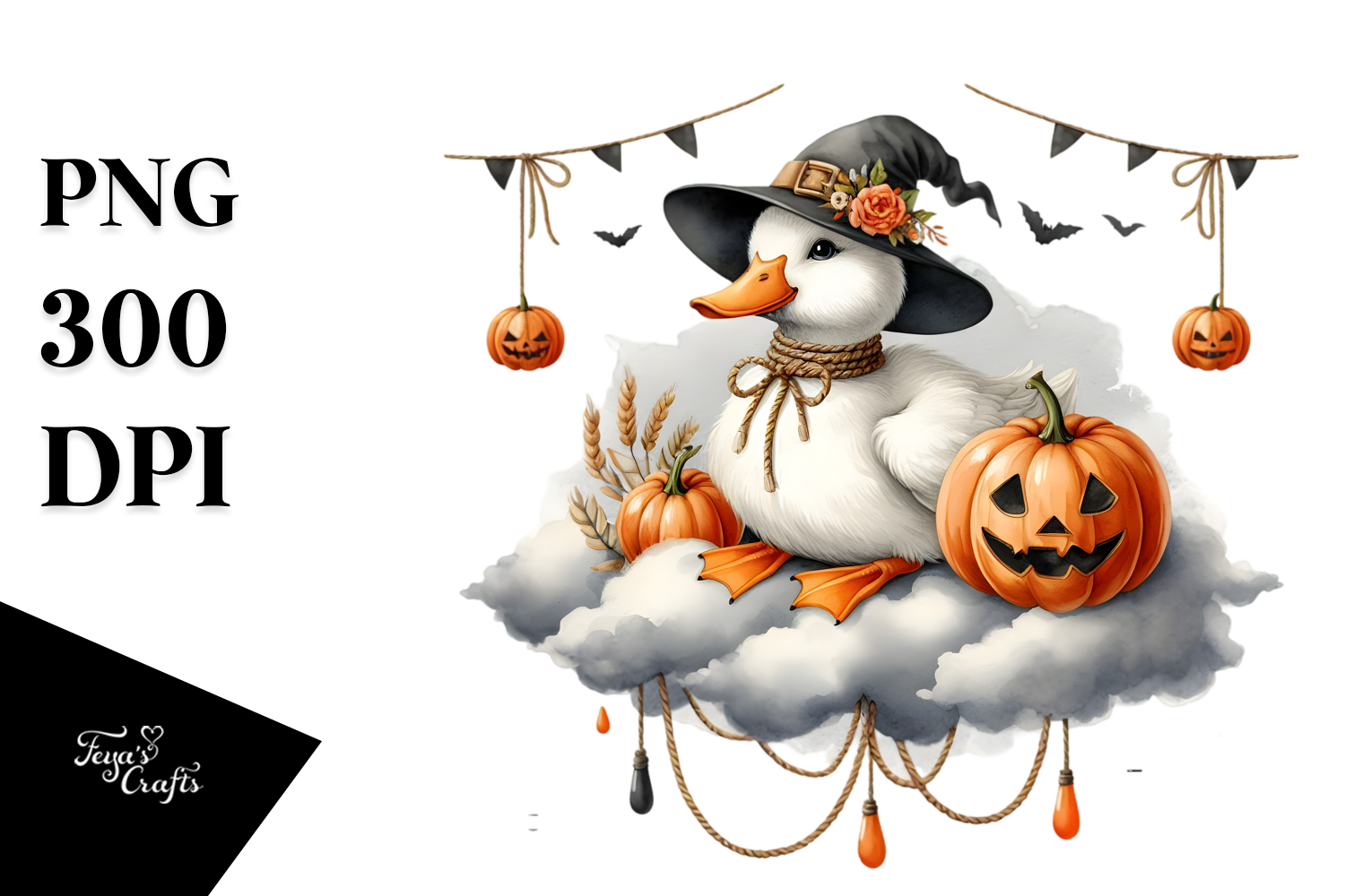 Halloween Duck on Cloud with Jack'o Lanterns PNG example image 1