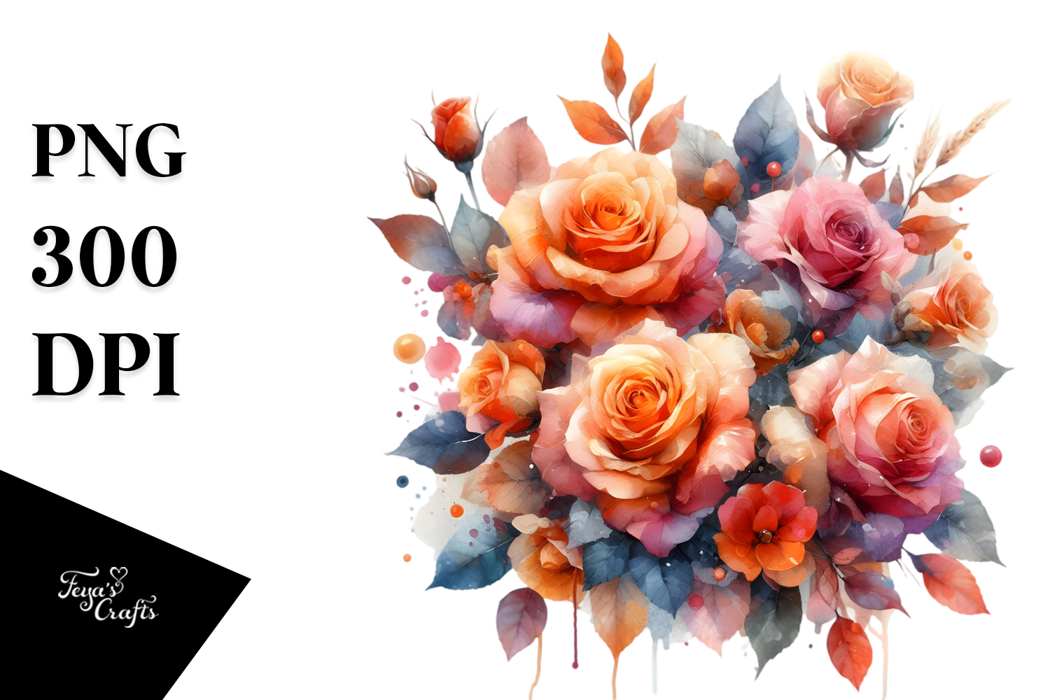 Glossy Petals Orange Roses Watercolor Abstract PNG example image 1