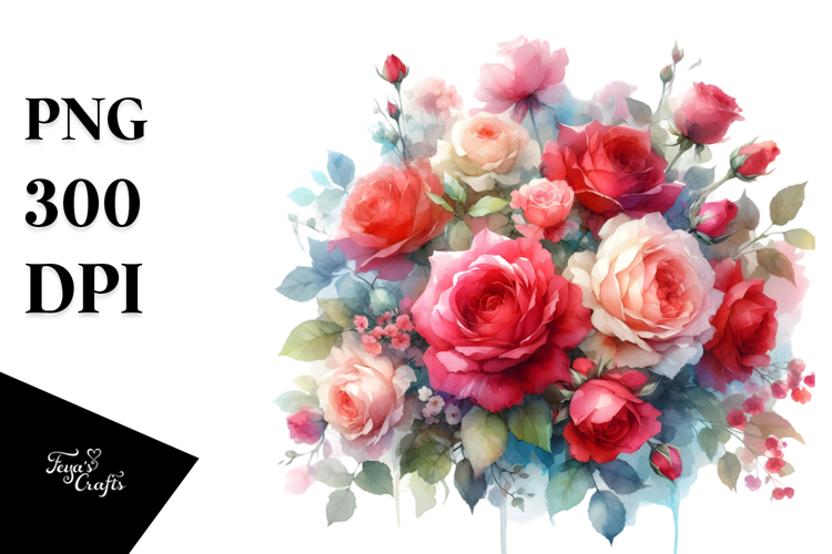 Colorful Red Roses Watercolor PNG example image 1