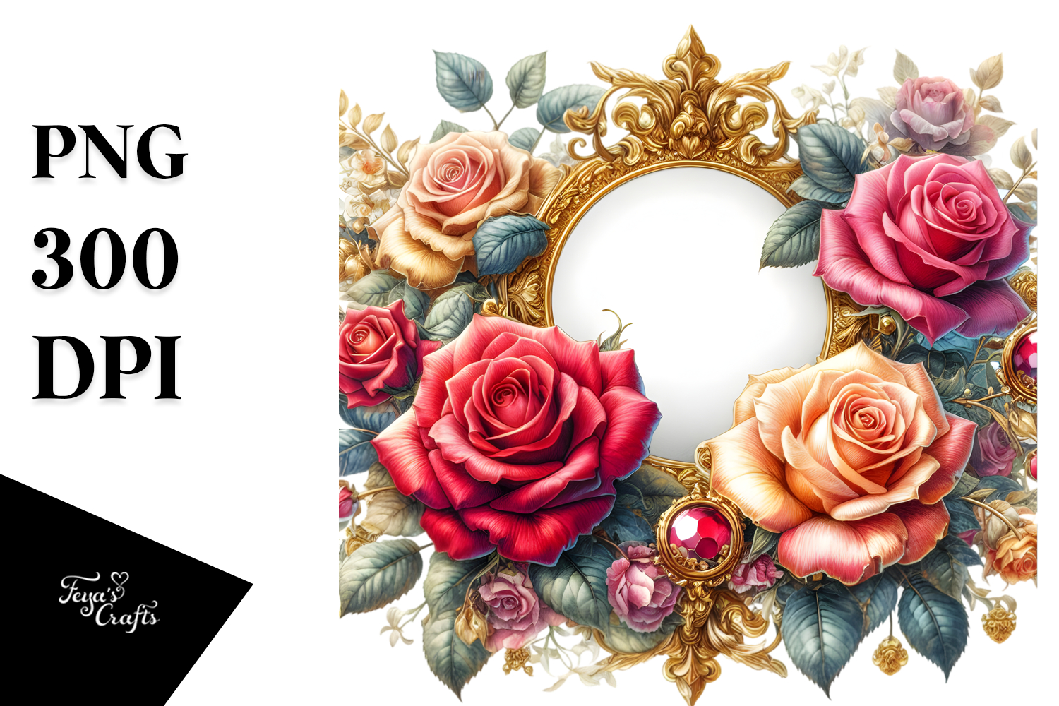 Gold Insertions Red Roses Watercolor PNG example image 1
