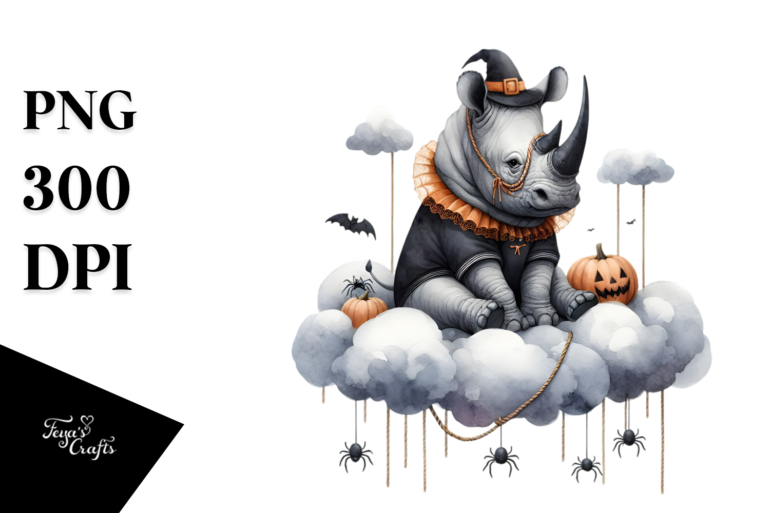 Rhino Dressed for Halloween on Cloud PNG example image 1