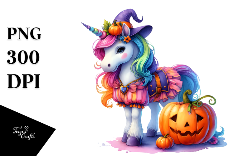 Unicorn Dressed for Halloween with Pumpkin PNG example image 1
