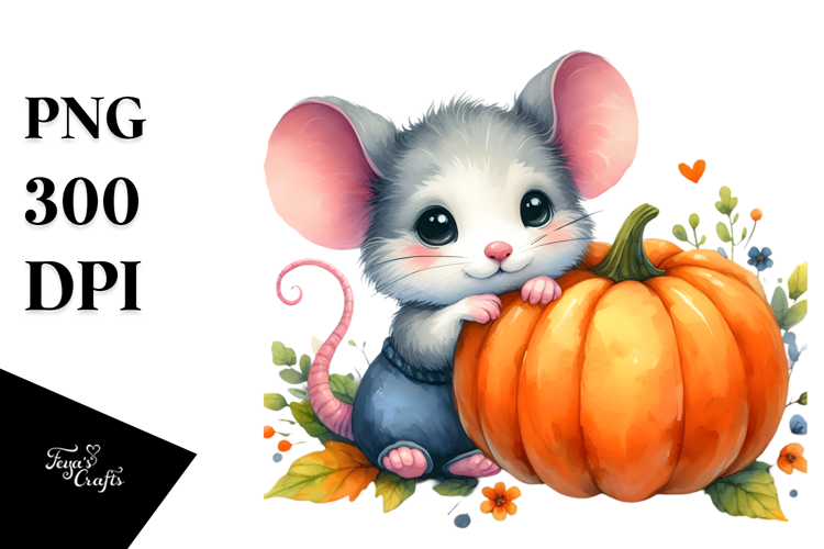 Similar Design Products to Simple Watercolor Baby Mouse with Pumpkin PNG