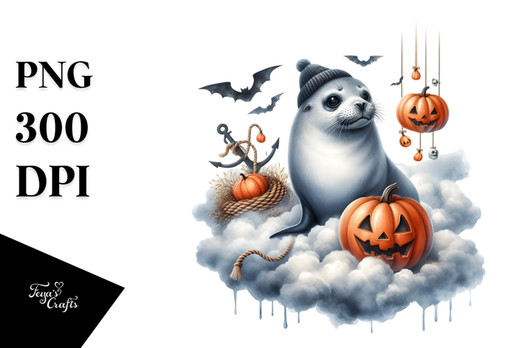 Similar Design Products to Seal Dressed for Halloween, Watercolor PNG