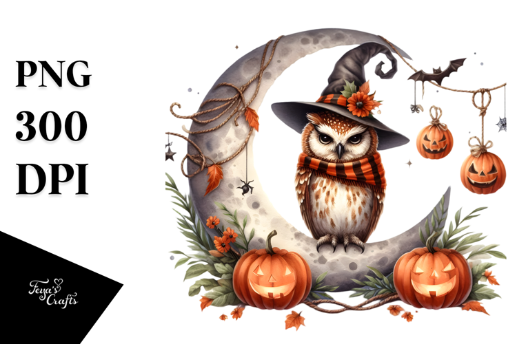 Similar Design Products to Halloween Owl on Half Moon PNG