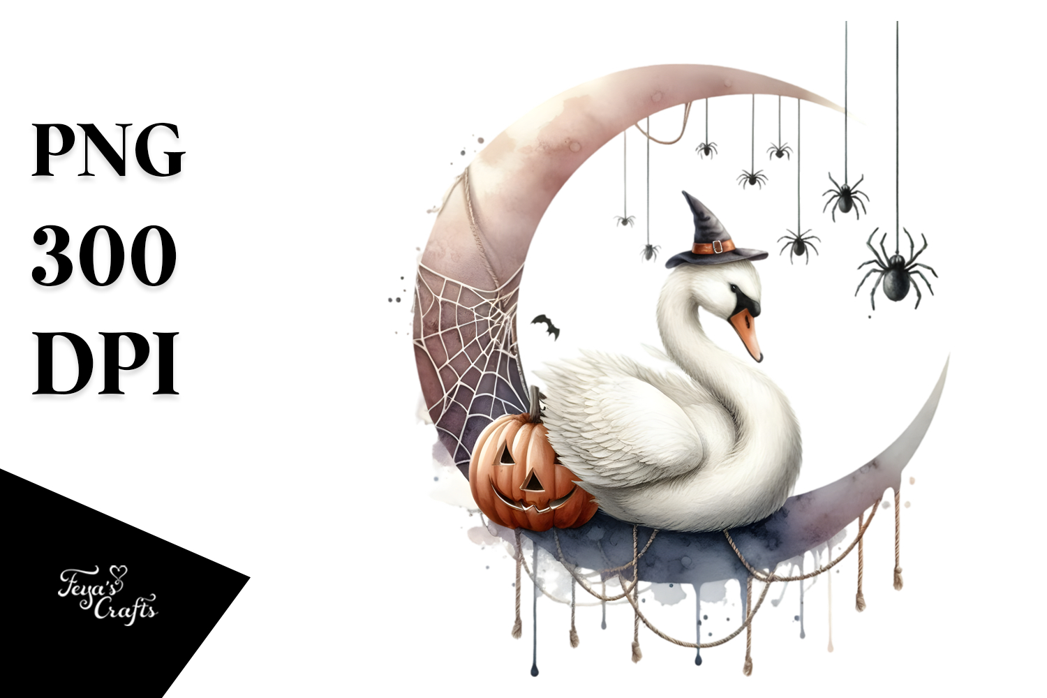 Watercolor Halloween Clipart Moon Swan Ropes Spiders Whitebackground Centered