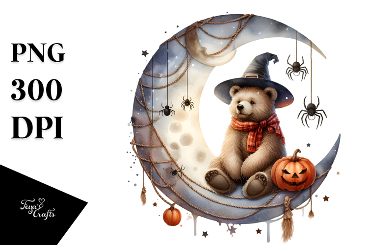 Watercolor Halloween Bear Clipart Moon Ropes Spiders Whitebackground Centered