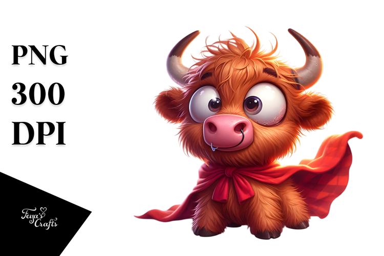 Similar Design Products to Cartoony Highland Cow Superhero PNG