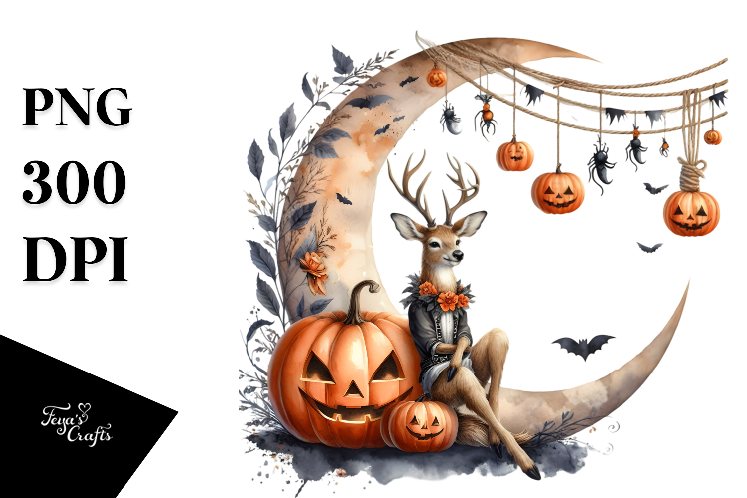 Sticker Summer Halloween Flower Deer Png Spooky Sublimation Jack-o-lanterns