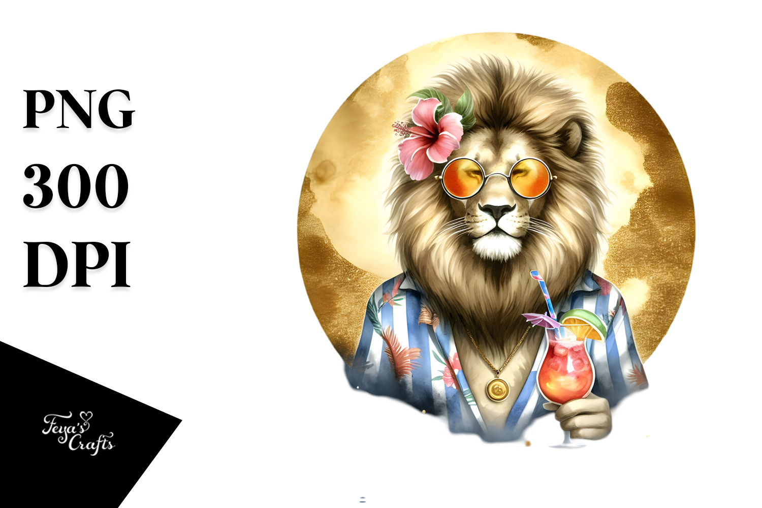 Watercolor Lion Penguin Cocktail Whitebackground Beachwear Goldfoil Dustcloud