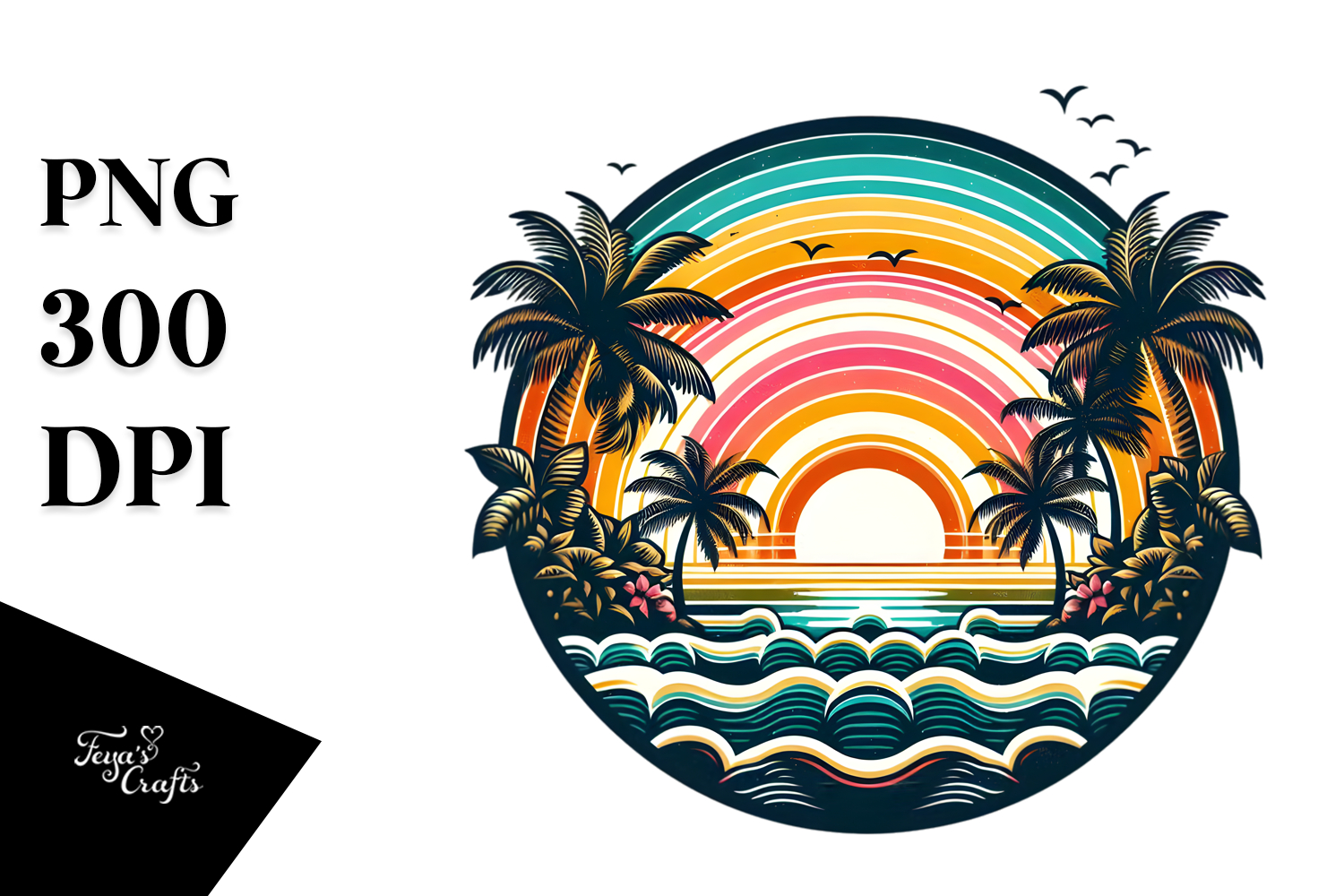 Similar Design Products to Tropical Rainbow Sunset Clipart PNG