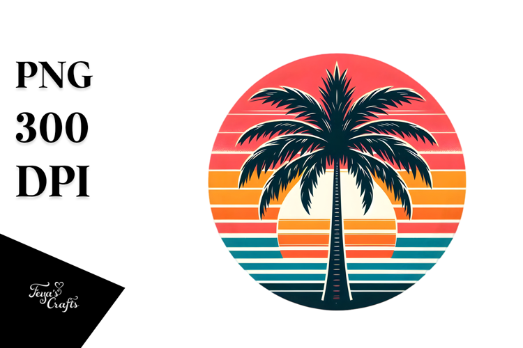 Retro Sticker Summer Tree Flower Sunset Tropical Png Sublimation