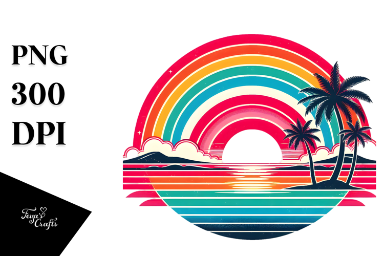 Similar Design Products to Retro Tropical Rainbow Sunset Clipart PNG