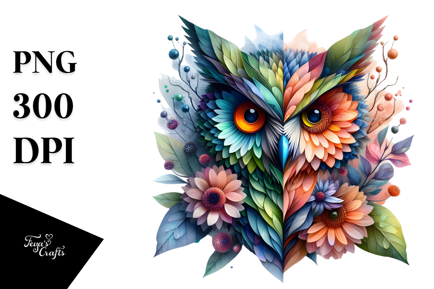 Similar Design Products to Vibrant Owl with Flowers PNG