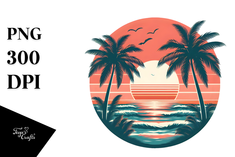 Similar Design Products to Retro Tropical Beach Sunset Clipart PNG