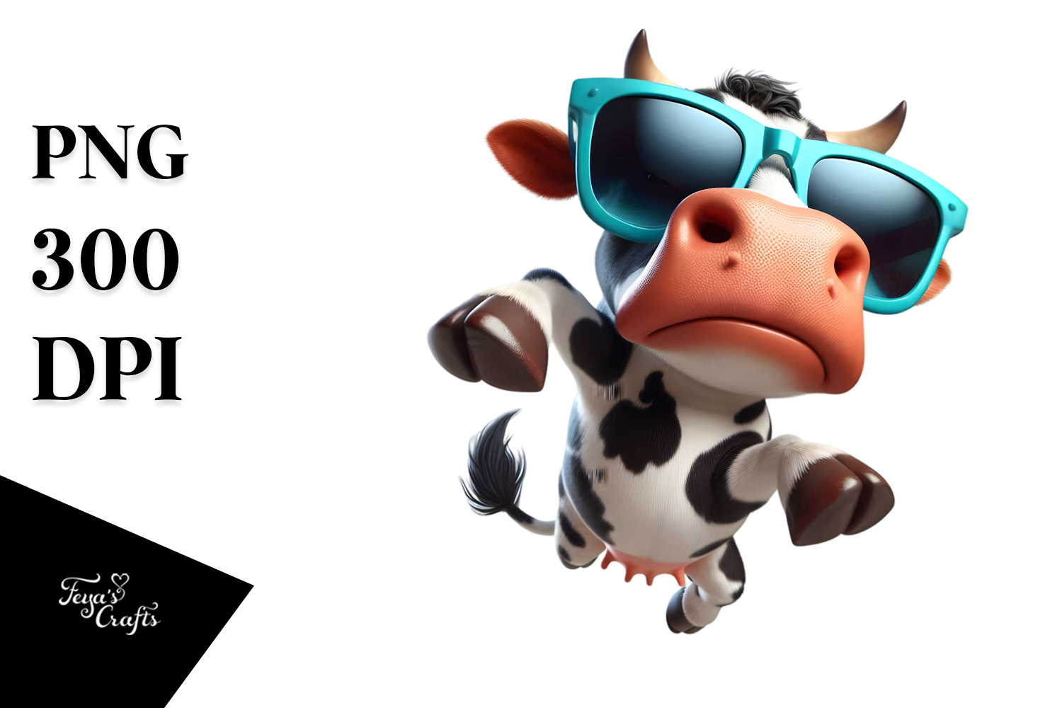 Cartoon Cow with Oversized Sunglasses PNG example image 1
