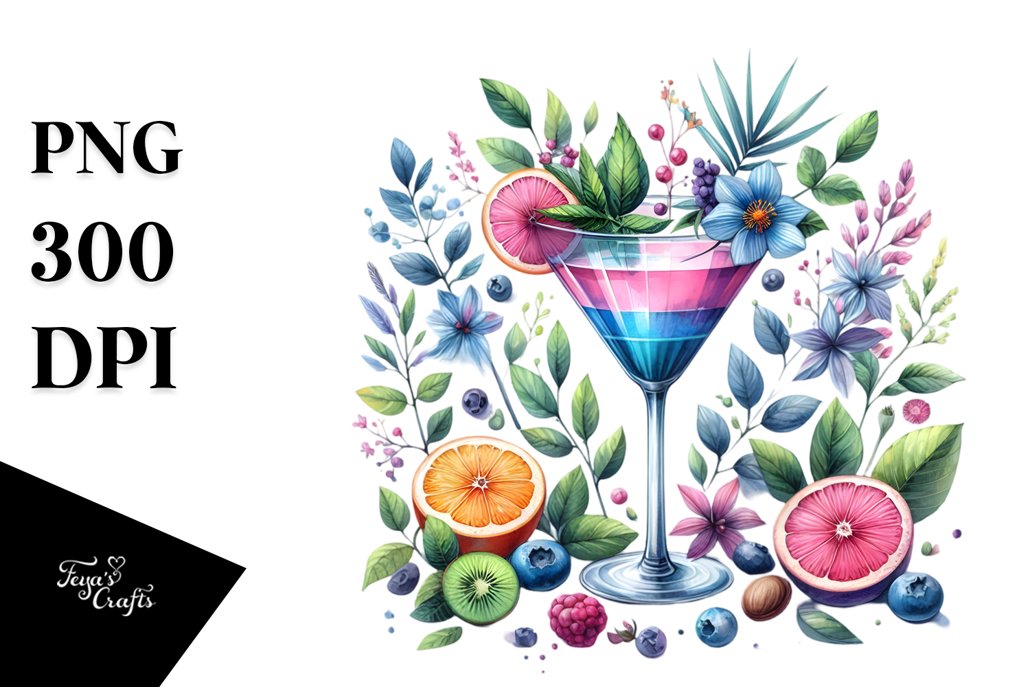 Sticker Summer Creative Flower Png Glass Cocktail Sublimation Viewfromback