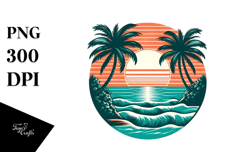 Retro Sticker Summer Flower Clipart Tropical Png Sublimation Islandsunset
