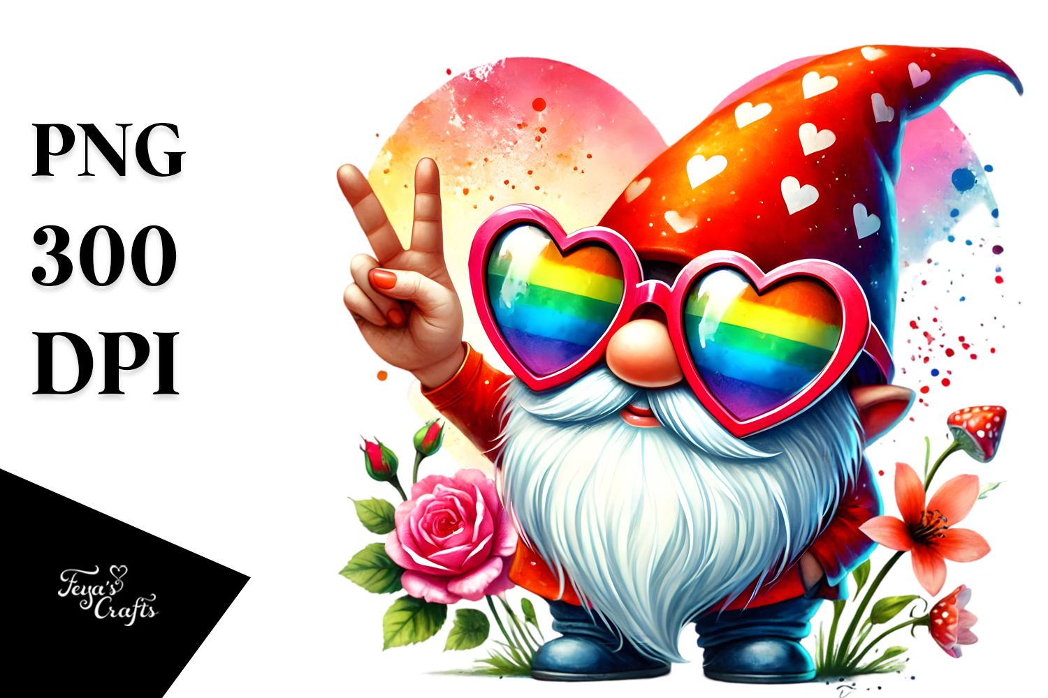 Colorful Watercolorpainting Victorysign Valentinesgnome Largeheartshapedsunglasses