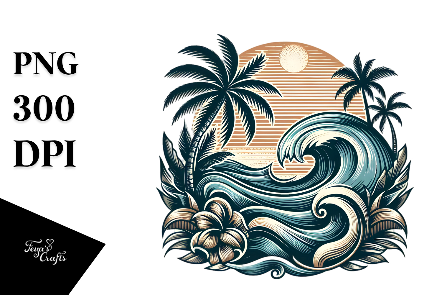 Similar Design Products to Vintage Tropical Waves, Vector Design
