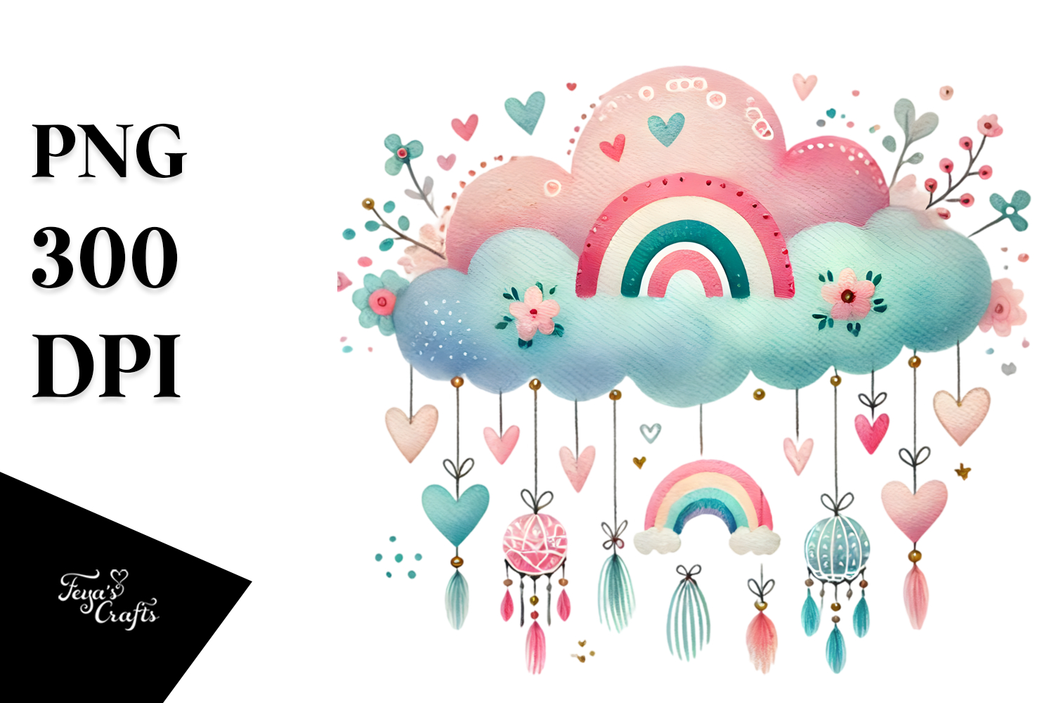 Similar Design Products to Colorful Boho Cloud with Hearts PNG