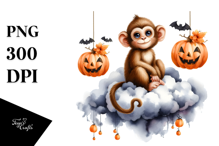 Similar Design Products to Watercolor Monkey Halloween Cloud PNG