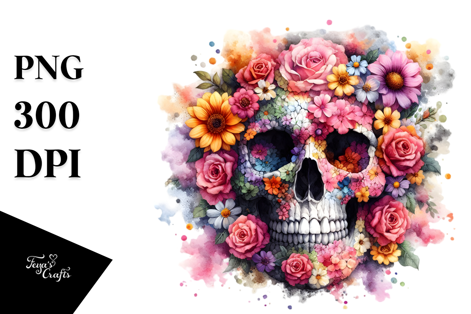 Similar Design Products to Colorful Skull Flowers, PNG