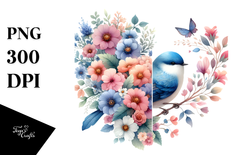 Spring Summer Colorful Flower Clipart Bird Adorable Whitebackground