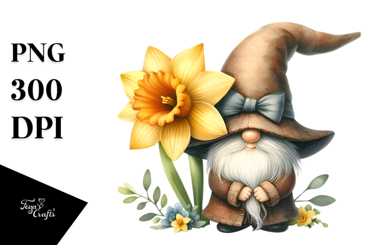 Cute GNOME with Big Hat and Daffodil PNG example image 1